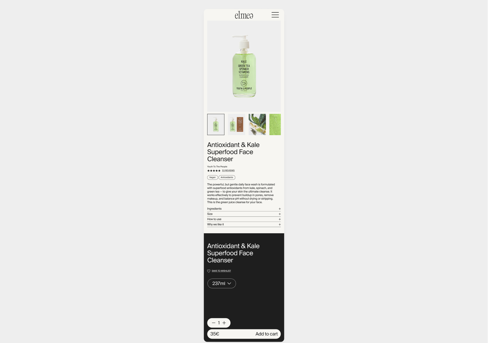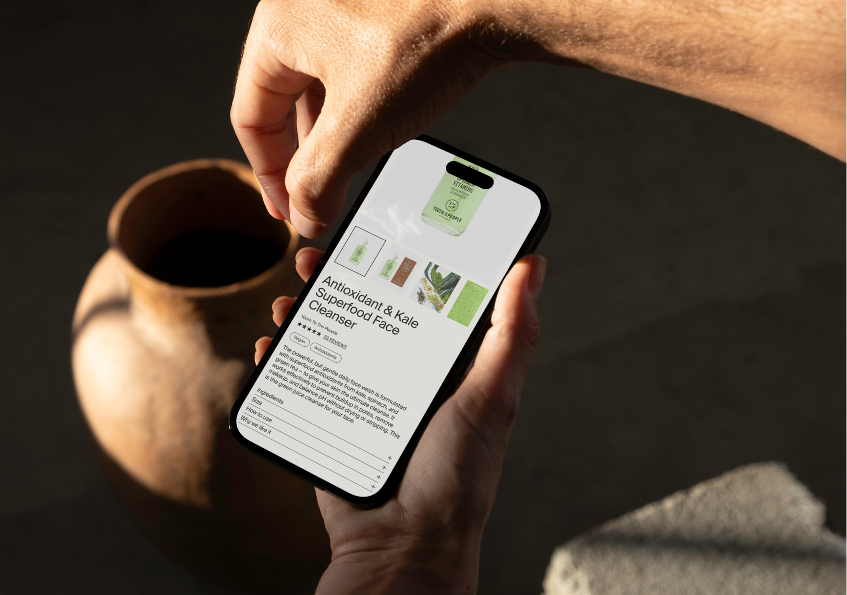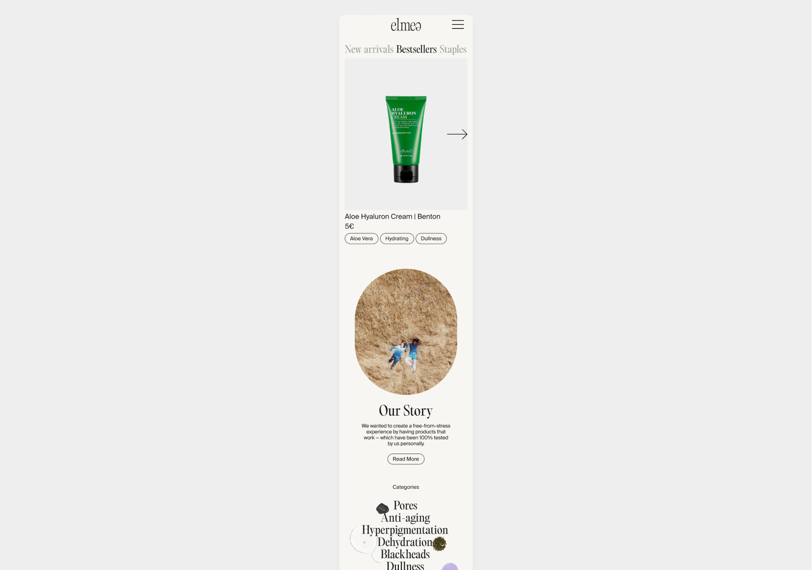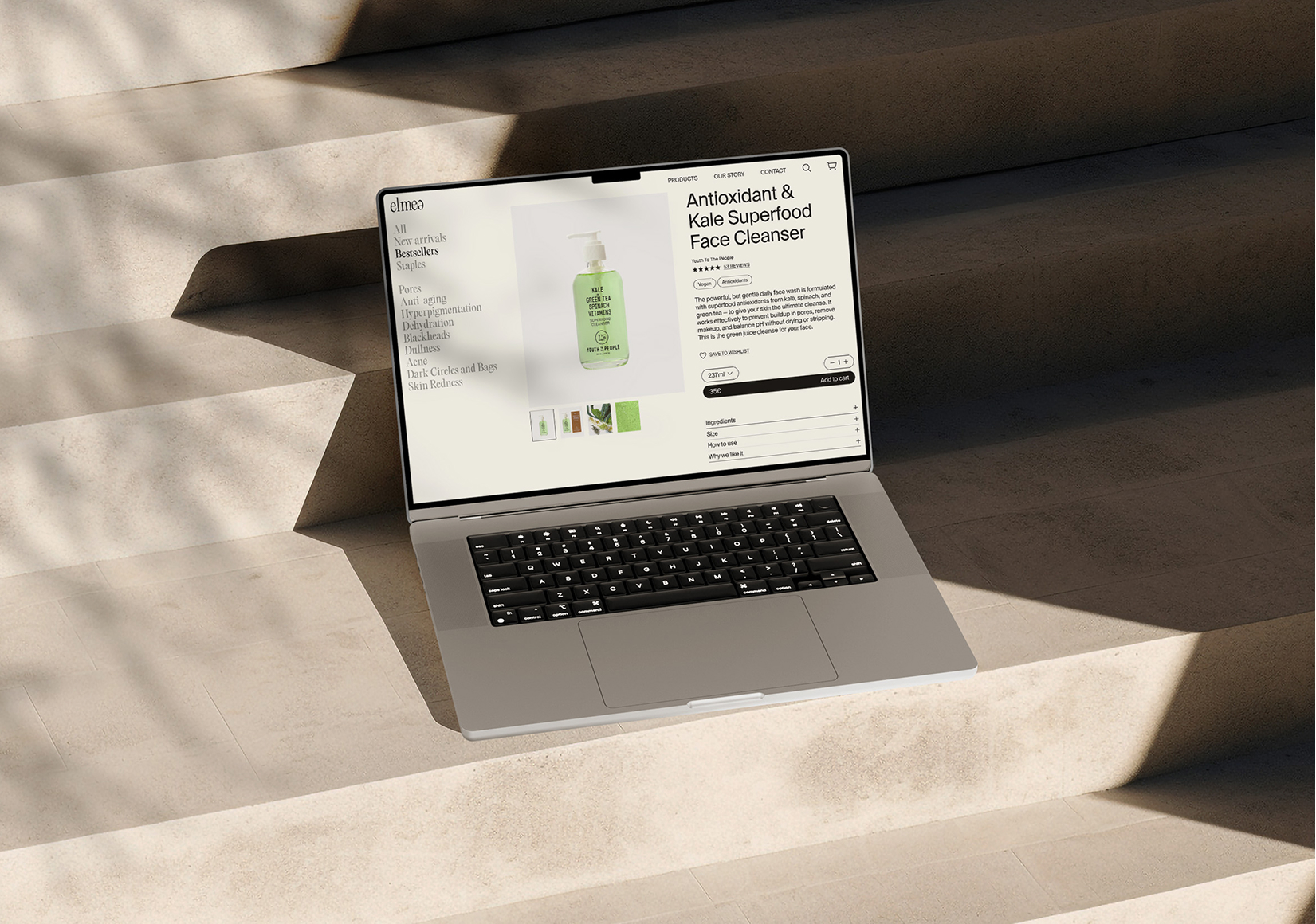 Typography plays a key role in the brand’s personality, interactions shift from serif to sans-serif on hover, adding a playful touch. Slowly moving ingredients in the background symbolise transparency and the natural essence of the beauty products. This subtle visual element reinforces a commitment to honest, clear formulations.