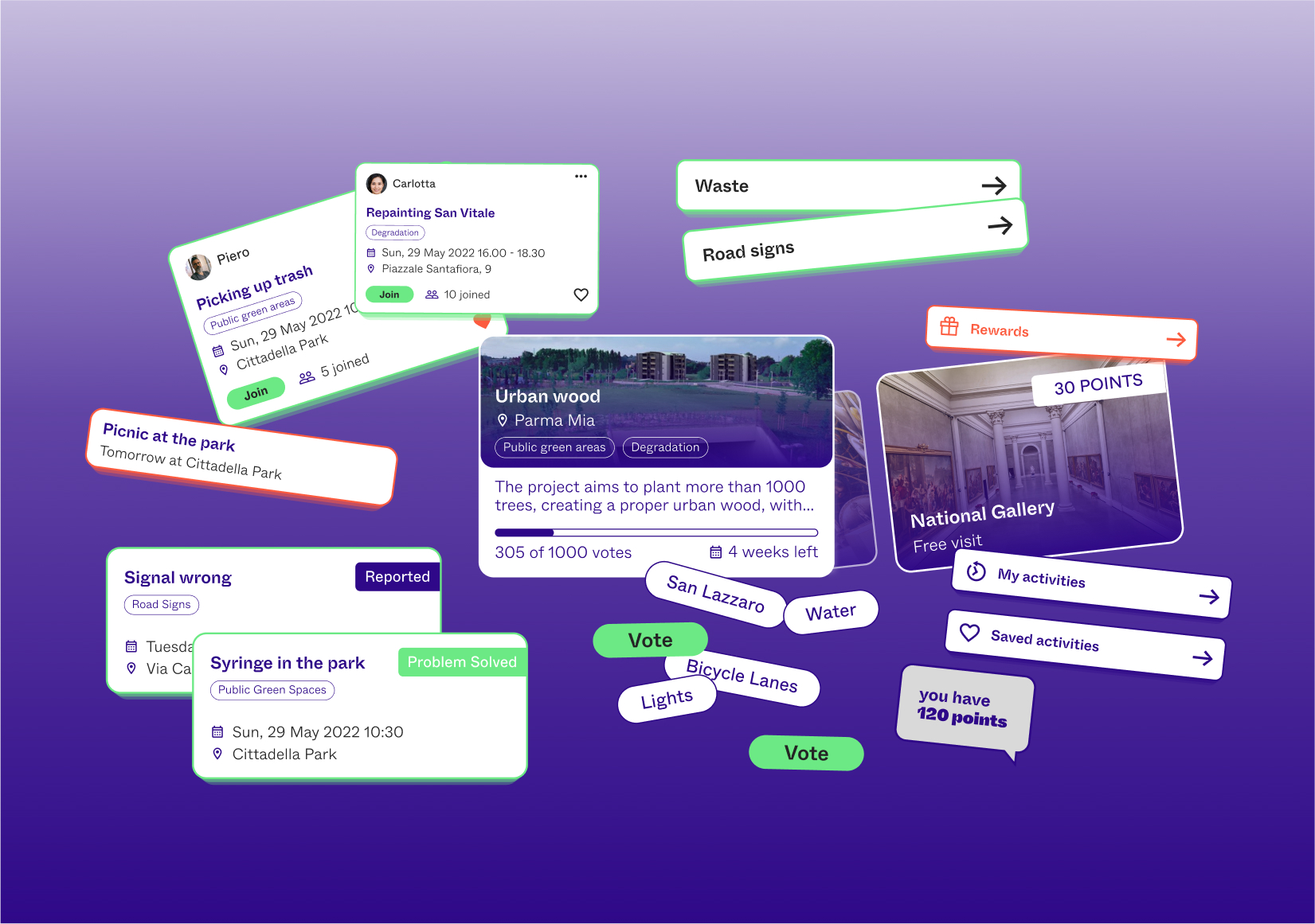 To convey empowerment, proactivity, and engagement in the city’s future, we chose a design defined by vibrant colours and expressive typography. The visual approach is primarily graphical, with images used sparingly and always enhanced by colour overlays.